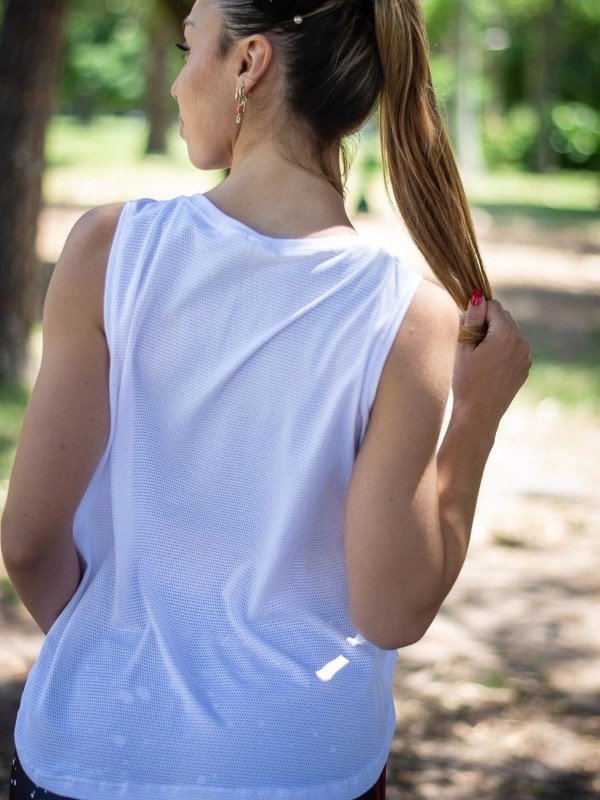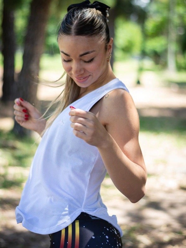 Musculosa deportiva súper liviana y fresca, diseñada para quienes buscan entrenar sin sentir la ropa pegada al cuerpo. Este modelo se destaca por su tejido con textura aireada (dry fit) que permite una excelente circulación del aire, manteniéndote seca incluso en los días más calurosos o rutinas intensas.