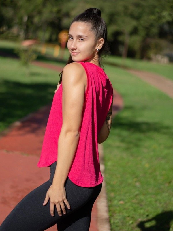 Musculosa deportiva súper liviana y fresca, diseñada para quienes buscan entrenar sin sentir la ropa pegada al cuerpo. Este modelo se destaca por su tejido con textura aireada (dry fit) que permite una excelente circulación del aire, manteniéndote seca incluso en los días más calurosos o rutinas intensas.