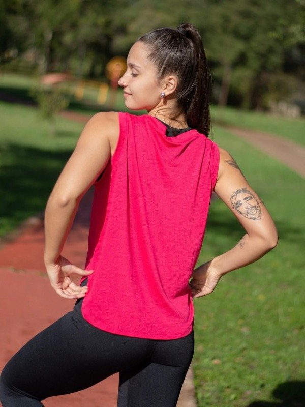 Cuenta con un favorecedor cuello en V que estiliza la figura y un diseño inteligente en el ruedo: posee pequeñas aberturas laterales que otorgan una caída natural sobre la cadera, evitando que la prenda se suba o ajuste incómodamente. Es una musculosa versátil, con un calce relajado que acompaña tus movimientos con total libertad.