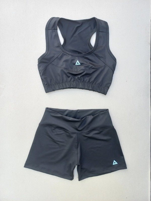 Conjuntos top ancho + calza corta lisa confeccionada de lycra sport