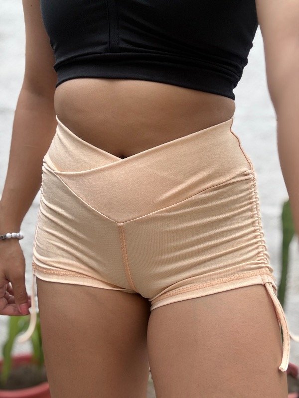 Short deportivo confeccionado en tela suave y elastizada, diseñado para quienes prefieren un estilo más llamativo y regulable. Su cintura combina un tiro en “V” delantero con una cintura bien alta en la espalda, brindando sujeción y un fit envolvente en la zona lumbar.